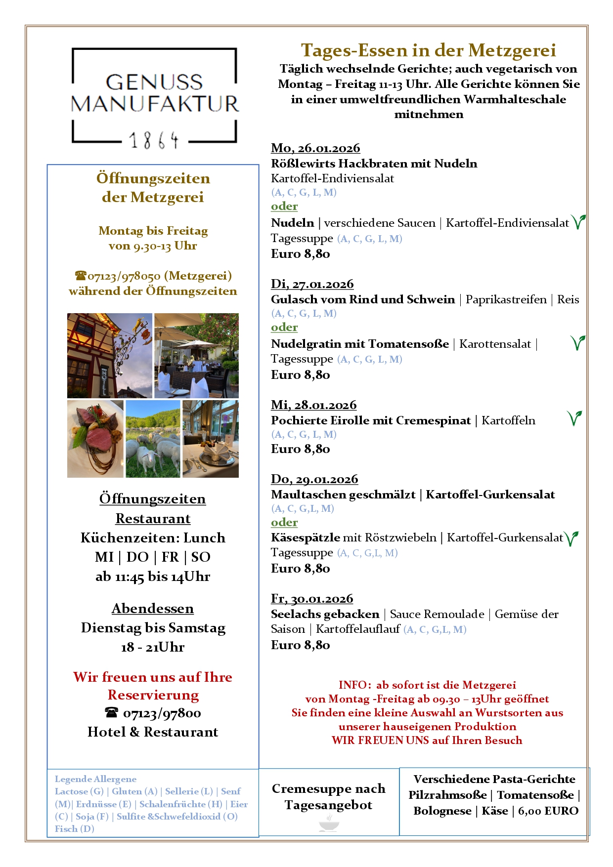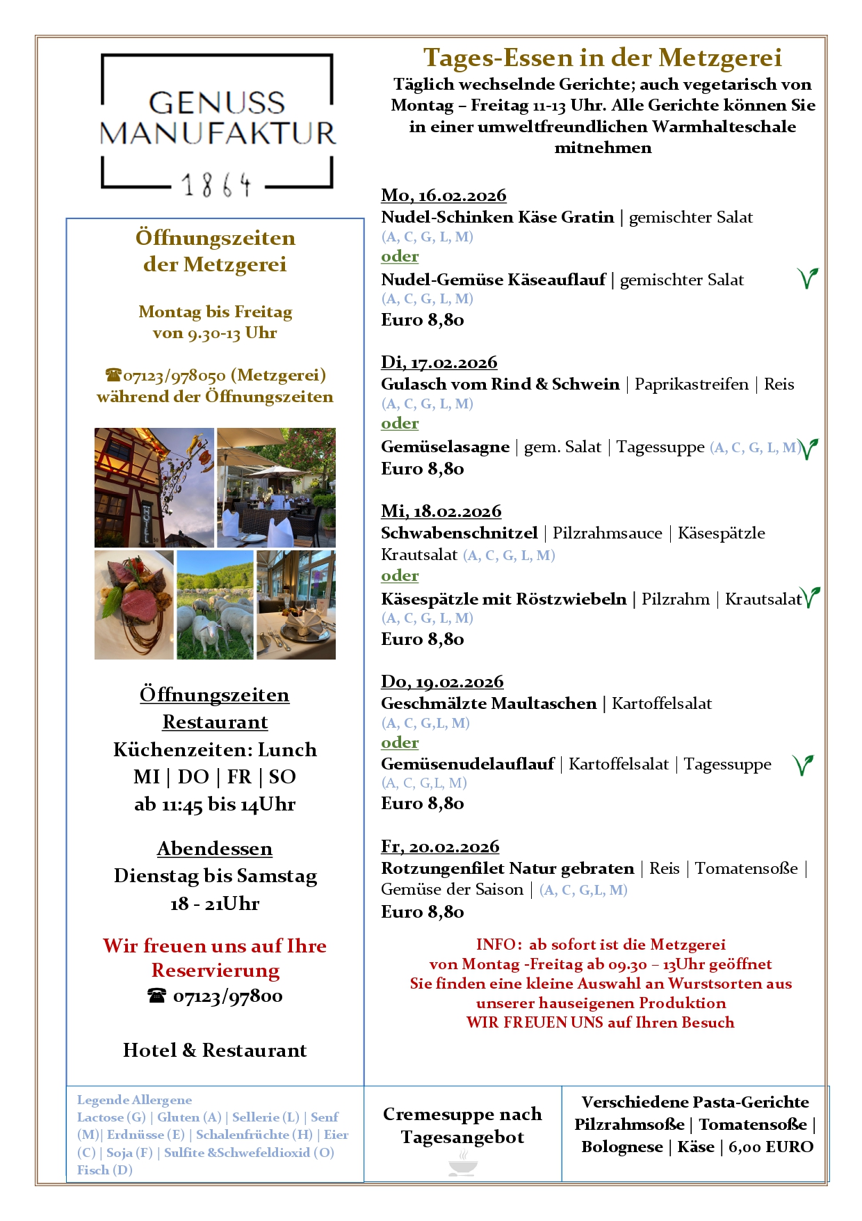 alle Suppen, Tagesgerichte,